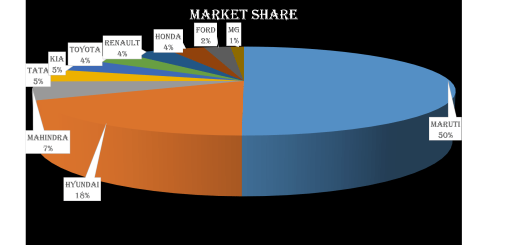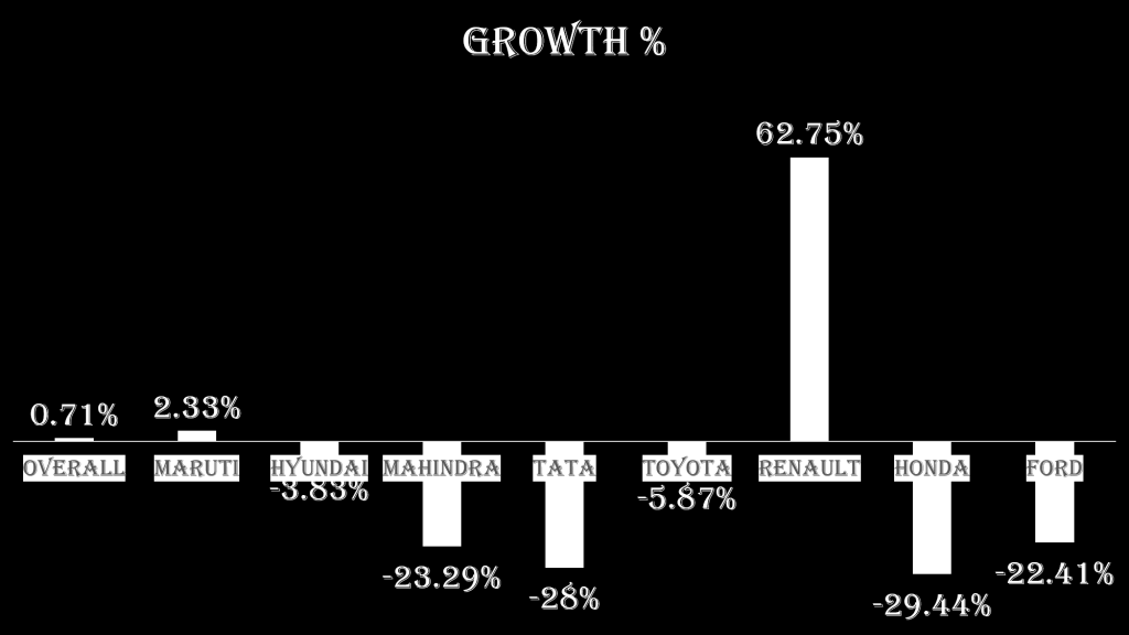 Among the players, Maruti which has over 48% market share shows a growth of 2.33% as compared to same month last year. There has been a significant growth for Renault. All the other top players have registered a negative growth as compared to last year. Kia and MG, the new entrants, also feature in top 10.