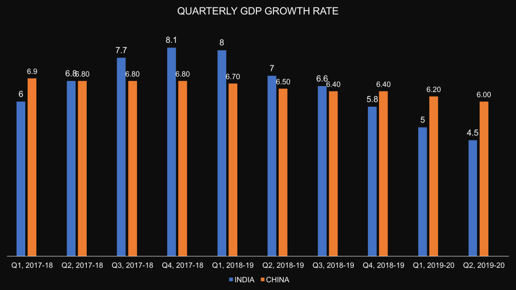 The government of India published the GDP growth numbers of Q2, 2019-20. The GDP growth stood at 4.5%, the lowest growth in 6 years. This is for the second time in 6 years that the quarterly growth has been below 5%. Indian economy has been showing a declining trend from quite some time now. Also other economic indicators showed dismal picture only in the recent past. Given this situation economists predicted a slow growth in this quarter.