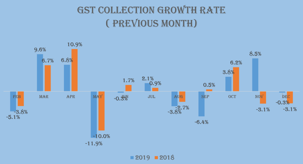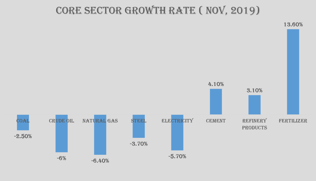 On the last day of 2019 ( 31st December, 2019) and the first day of 2020( 1st Jan, 2020), the Indian government came out with two important reports on Indian Economy. The Commerce and Industry Ministry came out with the report on the growth rate for the eight core sectors for the month on November on 31st December, 2019. The Ministry of Finance came out with GST collection figures for the month of December based on the economic activity in November on 1st January, 2020.