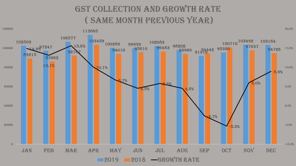 The GST collection for the month of December based on the economic activities in November showed a 8.9% growth as compared to the same month previous year. This is the second consecutive month where GST collection was more than Rs 1 lakh core and also reflecting positive growth after negative growth in September and October. With respect to previous month however there is a marginal decline. But this decline is less than the decline for the same period previous year.