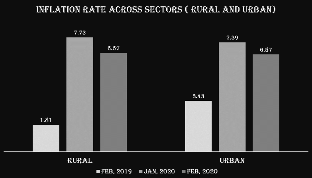 Both rural and urban India witnessed a decline in inflation rate as compared to the previous month. But the inflation rates are significantly higher when compared with the same month, previous year. The situation is more alarming in rural than in urban. This is the second month in a row where the rural inflation rate is higher than that of urban. This is an unusual phenomenon. A lot has been said about farm distress and lack of demand in rural economy. Higher inflation in rural India as compared to urban, makes the situation worse.