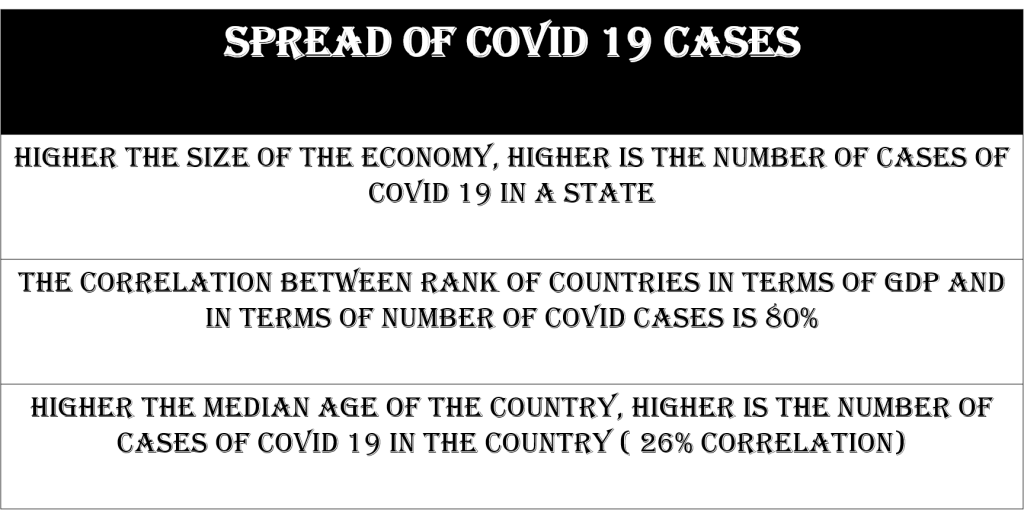 So it can be seen that in terms of tests and treatment outcome, HDI and median age are the main factors which determine the performance of the countries while size of the economy determines the extent of spread of the virus. The pattern which we had seen for the Indian states, holds true in the global context also. This clearly indicates the need of more focus on human development with government involvement in ensuring better health infrastructure.