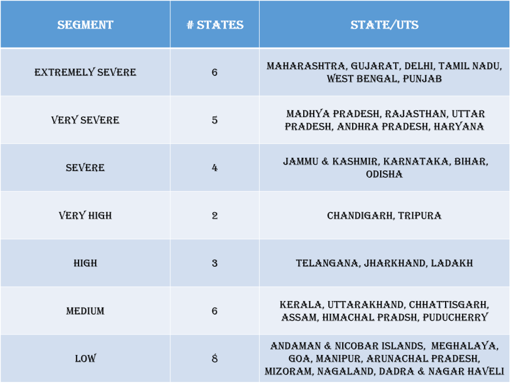 IPD divides the country into different risk segments based on the total number of cases in the state and the weekly growth rate. Here is how the segments are defined.