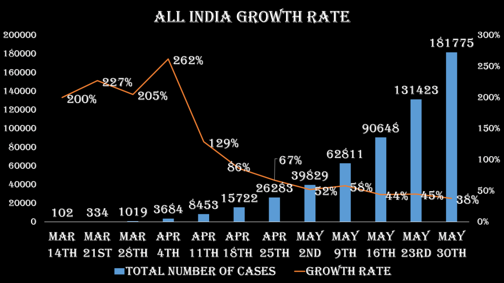 There are over 6.17 million cases of COVID-19 in the world today with over 342,727 deaths. In India there has been 181775 ( covid19india.org) cases till now with 5185 deaths. Here is a summary of the situation in India.