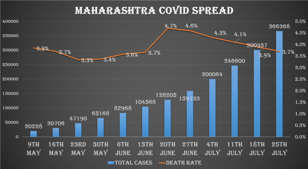 Let us deep dive on the top 3 states which account for over 50% of all cases in India.