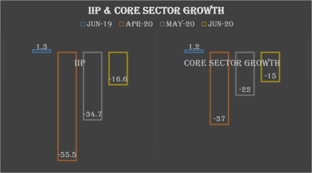 Both the IIP and the Core sector witnessed negative growth in the month of June. However the extent of negative growth has seen a continuous decline for the last three months. However as compared to June, last year, both the IIP and core sector growth has been significantly lower. So while the economy has seen more activity in June compared to previous two months, it is still far away from normal and still sees a significant negative growth in the month of June also.
