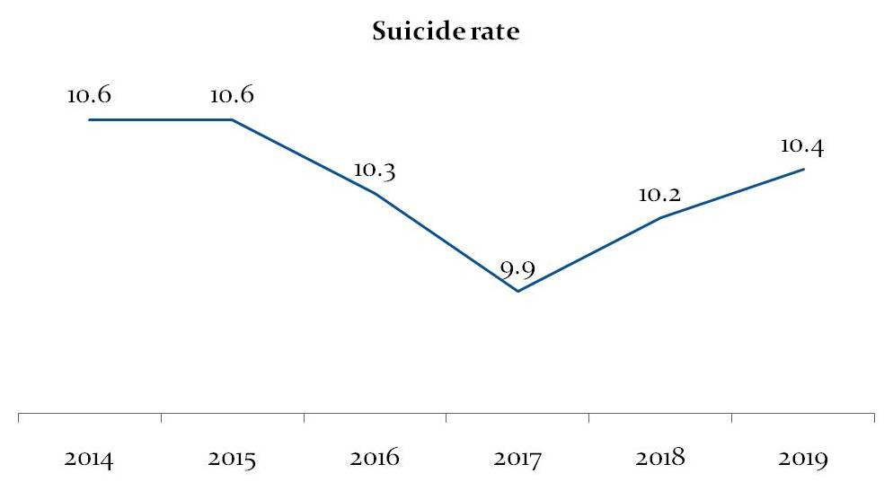 Suicides in India grew by 3.4% in 2019 over the previous year, official data released by the National Crime Records Bureau (NCRB) showed. A total of 1, 39, 123 Indians committed suicide during 2019, compared to 1, 34, 516 in 2018. It amounted to on average 381 suicides every day – or one suicide every 4 minutes. The rate of suicide (incidence of suicide per 1 lakh population) went up by 0.2 percentage points in 2019 vis-a-vis 2018. It marks the 2nd consecutive year that rate of suicide has gone up after successive years of downward shift.