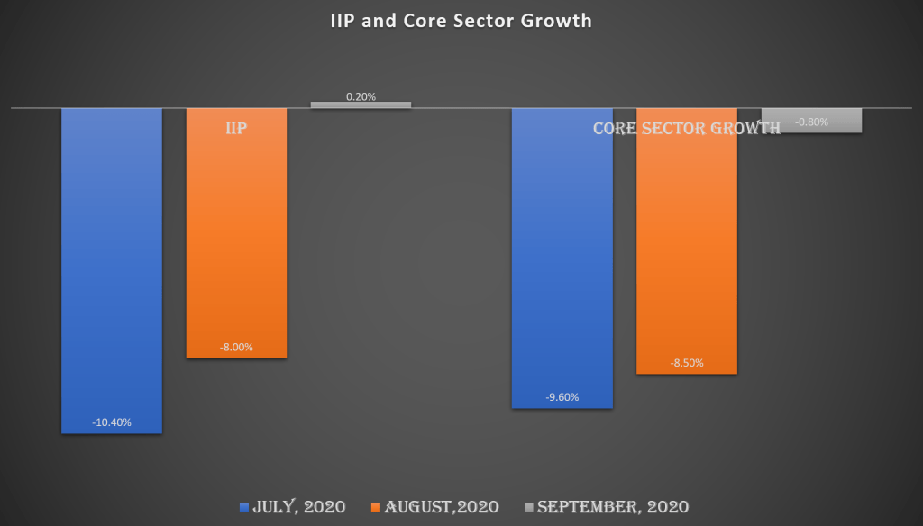 There has been a gradual improvement in both the index of industrial production (IIP) and the core sector growth over months. The IIP numbers have shown some nominal growth also in September, 2020 as compared to same month in the previous year. It however needs to be noted that there was a significant decline in IIP in September, 2019. So it could have been the low base factor. But this gradual improvement in growth rates is very important. A major contribution of IIP is coming from the manufacturing sector which is showing a -0.6% growth in the month of September, 2020. Manufacturing sector is one of the most people intensive sectors and hence its coming back to at least the last years level is a welcome trend. However it remains to be seen whether this is sustainable and also when it moves into the normal growth trajectory.
