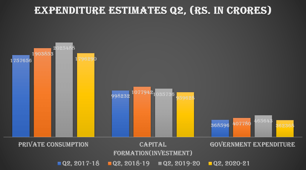 All the three components have the Q2, 2020-21 levels similar to 2017-18 , same quarter. So it can be said that as per all the three major components, Indian economy has leaped back three years during this period of recession.