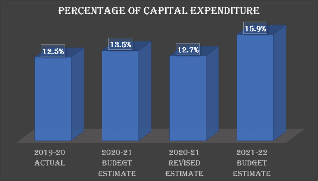 A surge in this implies more investment from government, which will bring in more work in the economy and will in a way boost up employment and hence will have a impact on inducing demand in the economy as with more employment, more spending is likely to get induced. So the projection of the capital expenditure to rise from 13.5% in budgetary allocation in FY 20-21 to almost 16% in FY 21-22 is a step in the right direction.
