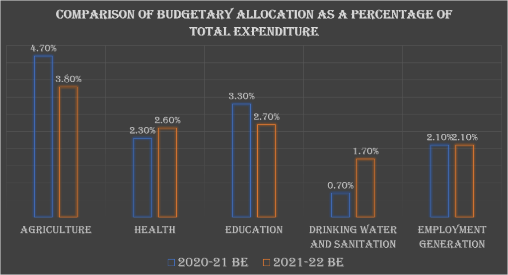 Let us now look into how has the budgeted allocation in the important areas has been in for the next fiscal (FY-21-22) as compared to the budgeted allocation in FY 20-21.