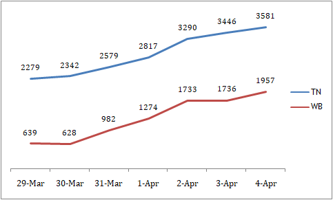 While Tamil Nadu will vote on 6th April, West Bengal assembly elections is being conducted in 8 phases with 2 phases already over but 6 still pending and going on till 29th April, thus increasing the risk factor more here. While the Election Commission of India is ensuring covid compliant behavior in polling booths, the same hardly holds true for the campaigning where social distancing norms are rarely being practiced.