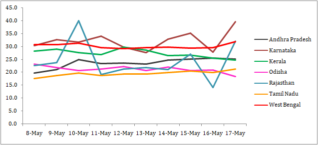 Of these, Karnataka registered a CPR of ~40% yesterday while Rajasthan and West Bengal were also 30%+.