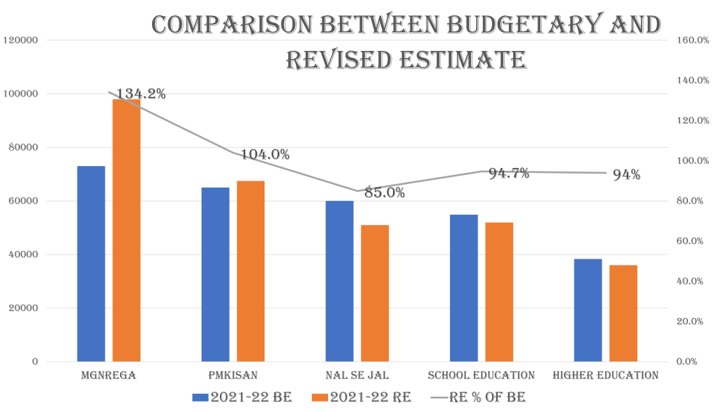 One of the major aspect of any budget remains how much of the allocated fund has been spent in the current fiscal year. Because the budget happens before the fiscal ends, we get a revised estimate and not the true actual figures. But a comparison of budget estimates and revised estimate will be a good measure on how much is expected to be spend out of the total allocated fund for different aspects.