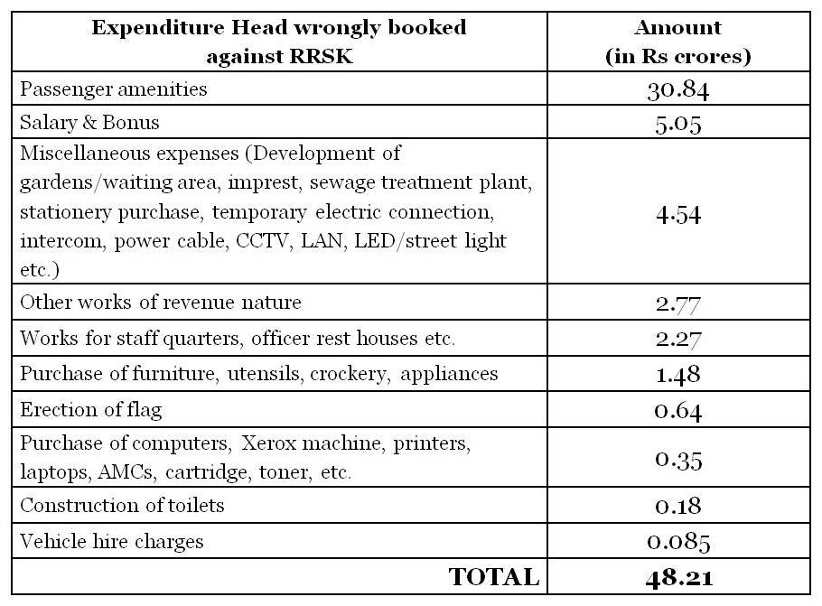 Vouchers amounting to Rs 2995.58 crores, booked under RRSK were audited and it was found that vouchers amounting to Rs 48.21 crores were not pertaining to the three Priority areas as set by MoR. Details of the same are given below: