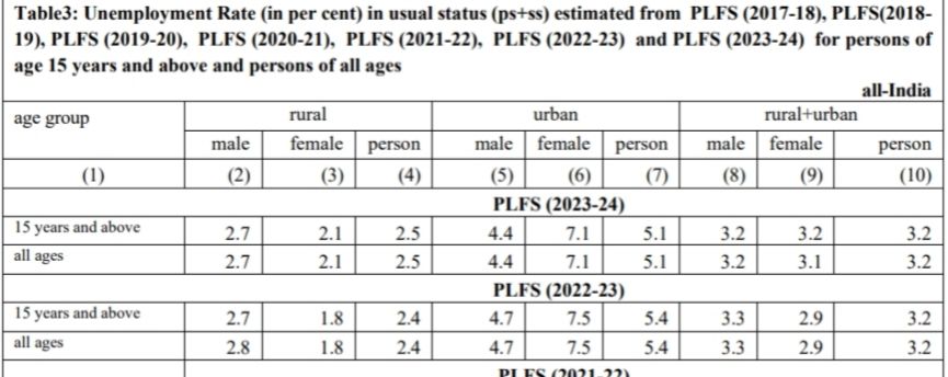 India’s unemployment rate remained steady at 3.2% in 2023-24, with significant disparities across demographics and geographies.
