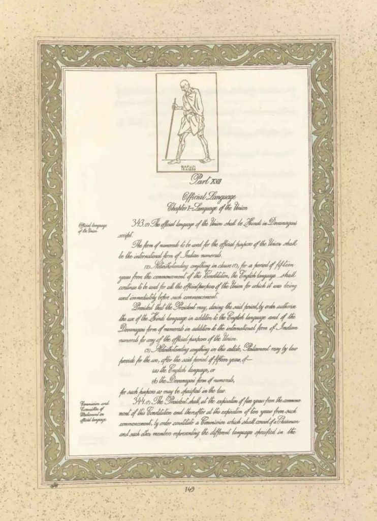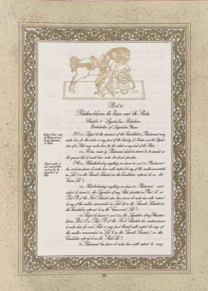The illustrations in the Constitution were a result of the collective genius of artists like Beohar Rammanohar Sinha and Dinanath Bhargava, led by Nandalal Bose. Each painting was designed to capture a significant epoch or cultural aspect of Indian history, making the Constitution a document that resonates with India’s diverse ethos. The calligraphy, a crucial part of the manuscript, was the handiwork of Prem Behari Narain Raizada, who inscribed the text in both English and Hindi.