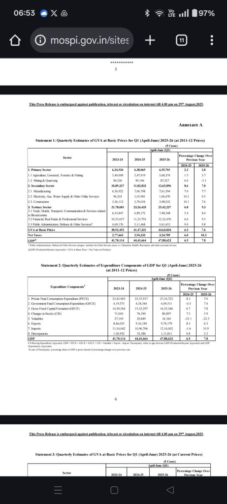 Q1 FY26 is a good growth number built on an unbalanced mix. Services and the state delivered; construction cooled and manufacturing merely held its line; household consumption eased; imports ran ahead of exports. None of this argues for alarm. It argues for broadening. The task for the next three quarters is to convert fast GDP growth into felt growth—more sites breaking ground, more shop floors humming, and more households confident enough to spend without leverage. That is how a promising start becomes a durable expansion.